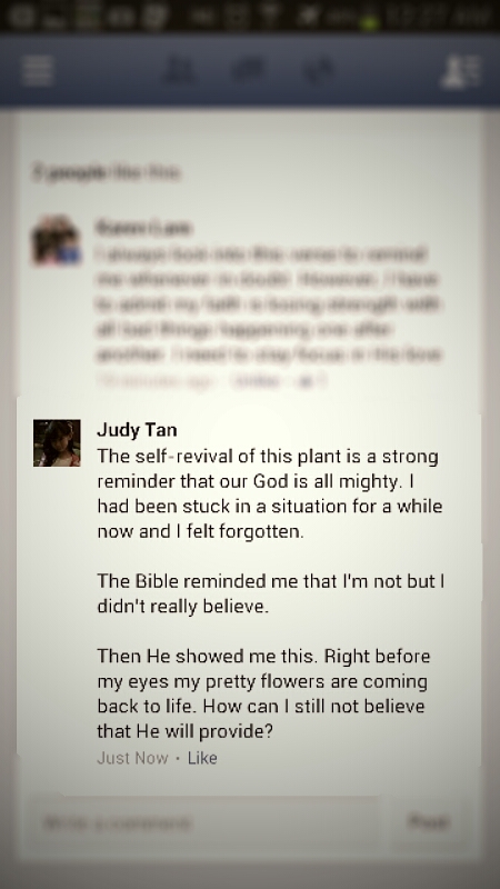 But my unexpected exam results and the resurrection of my lovely flowers seems to be His way of proving to me that He has not forgotten me.